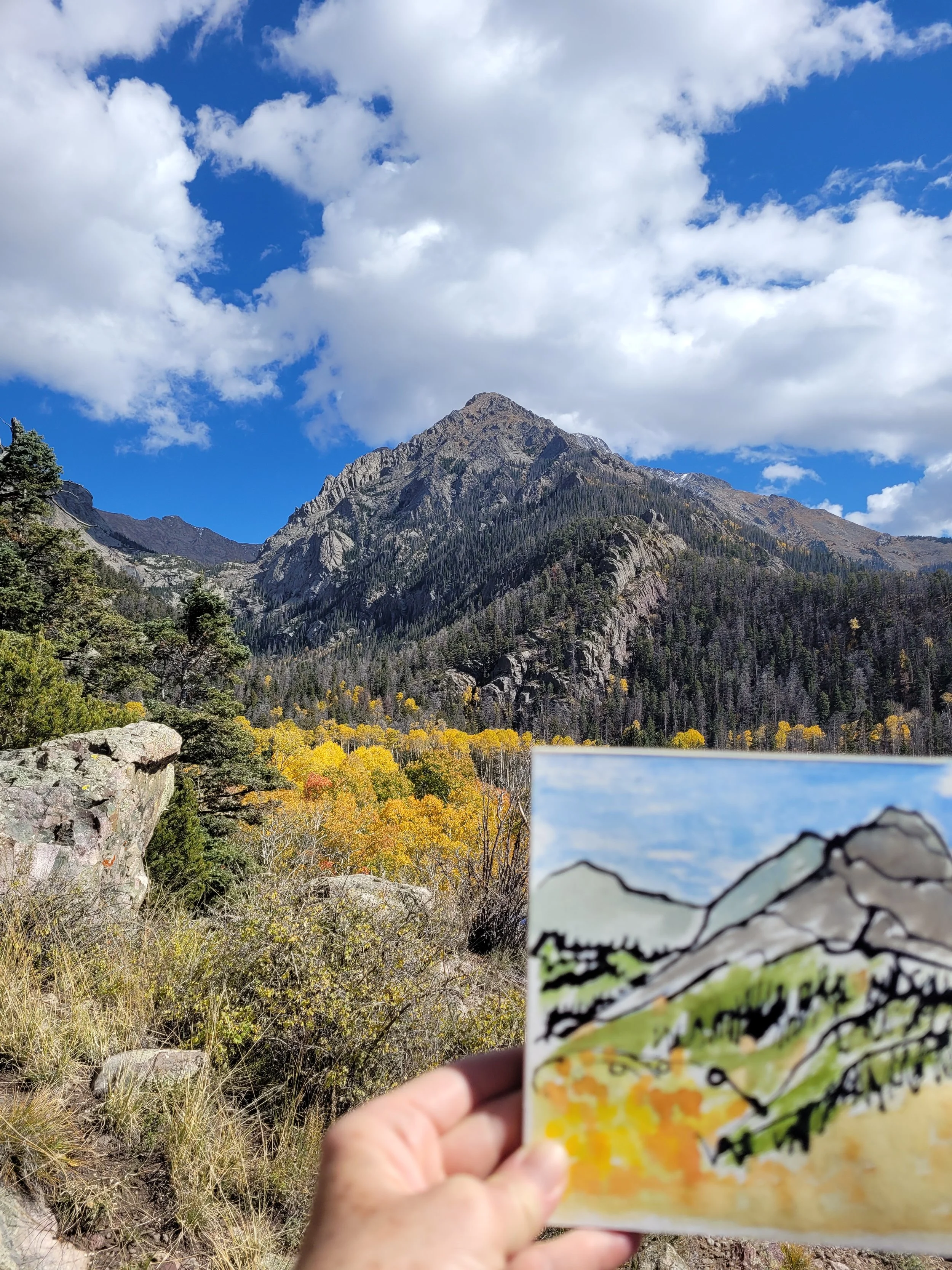 There’s nothing quite like the experience of feeling dwarfed by an endless expanse of high alpine valley or a wall of snow-capped 14ers. My passion for the rugged mountain landscape has guided my life for decades, and sparked a deep spiritual inquiry. After years of living in the Himalayan foothills studying with my spiritual teachers, my meditations now take place in the shadow of the Rocky Mountains. I share this meditative mountain experience with you through my art.